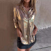 💖Limited Sale 50% OFF💖Women's Shimmer Metallic Leather Button-Up Shirt